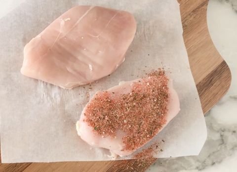 Let seasoned chicken rest for 30 minutes. This short wait lets the spices sink into the meat. The salt in the mix starts to pull out moisture and then gets pulled back in with all the flavors.