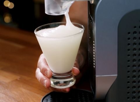 I grab a cup and place it under the dispenser. I pull the handle slowly to pour the slushy daiquiri. It comes out looking like a professional drink! If I’m feeling fancy, I add a lime wedge or a strawberry on the rim.