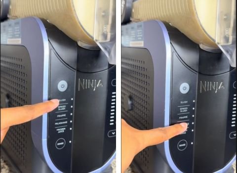 Plug in the Ninja Slushi and press the power button. Choose the “Milkshake” preset by pressing the button.