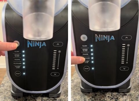 Plug in the Ninja Slushi and press the power button to turn it on. Press the “Milkshake” preset button.