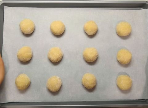 9. Place the dough balls on the prepared baking sheets, leaving about 2 inches between each. Do not flatten the balls—they will spread slightly while baking.